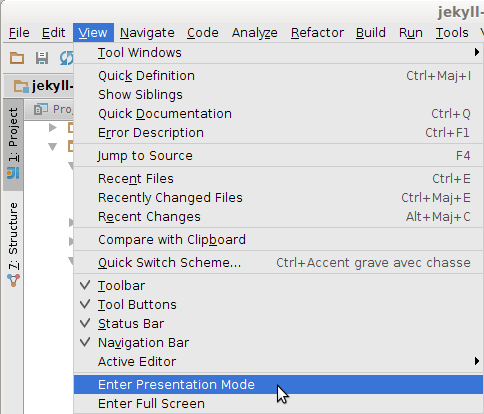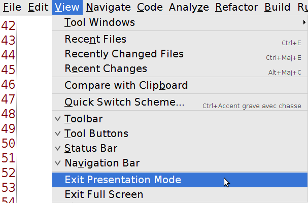 Avant la présentation 42 IntelliJ IDEA tips and tricks de Hadi Hariri (twitter) la solution c’était de fermer toutes les views autour de la classe ouverte puis de faire un ctrl+scroll pour zoomer. Cette époque est maintenant révolue, en effet, IntellJ possède un mode présentation qui s’occupe de faire tout cela.