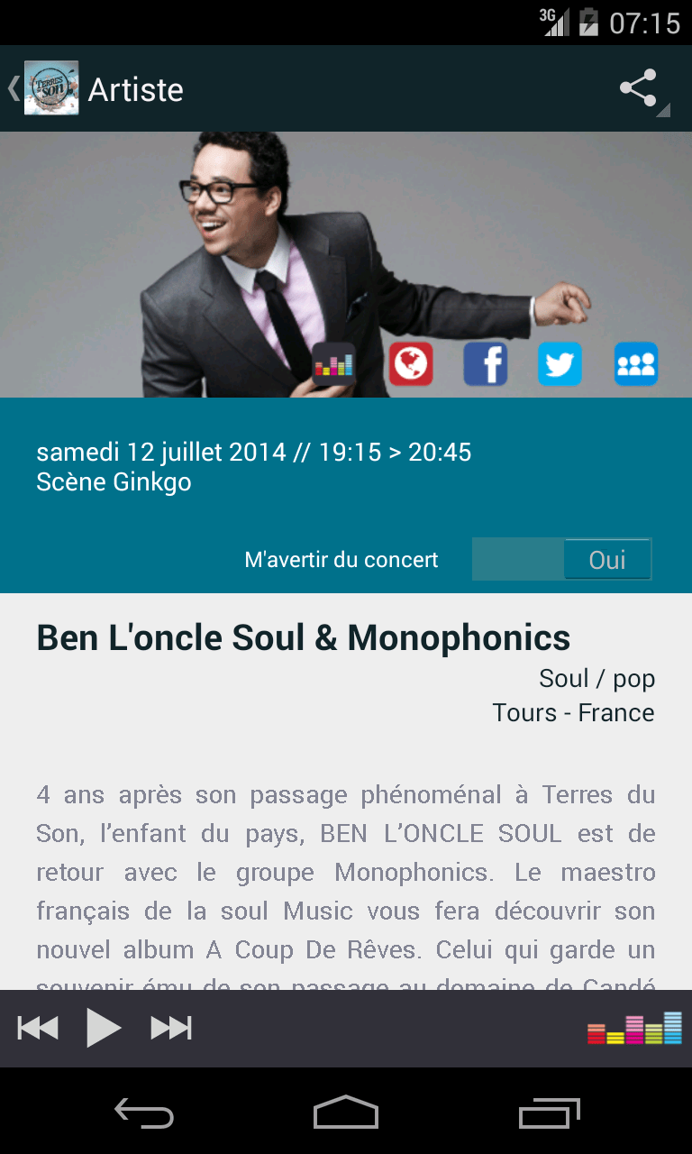 C’était annoncé, c’est maintenant chose faite ! L’application android pour Terres du Son 2014 est sur le Play Store.