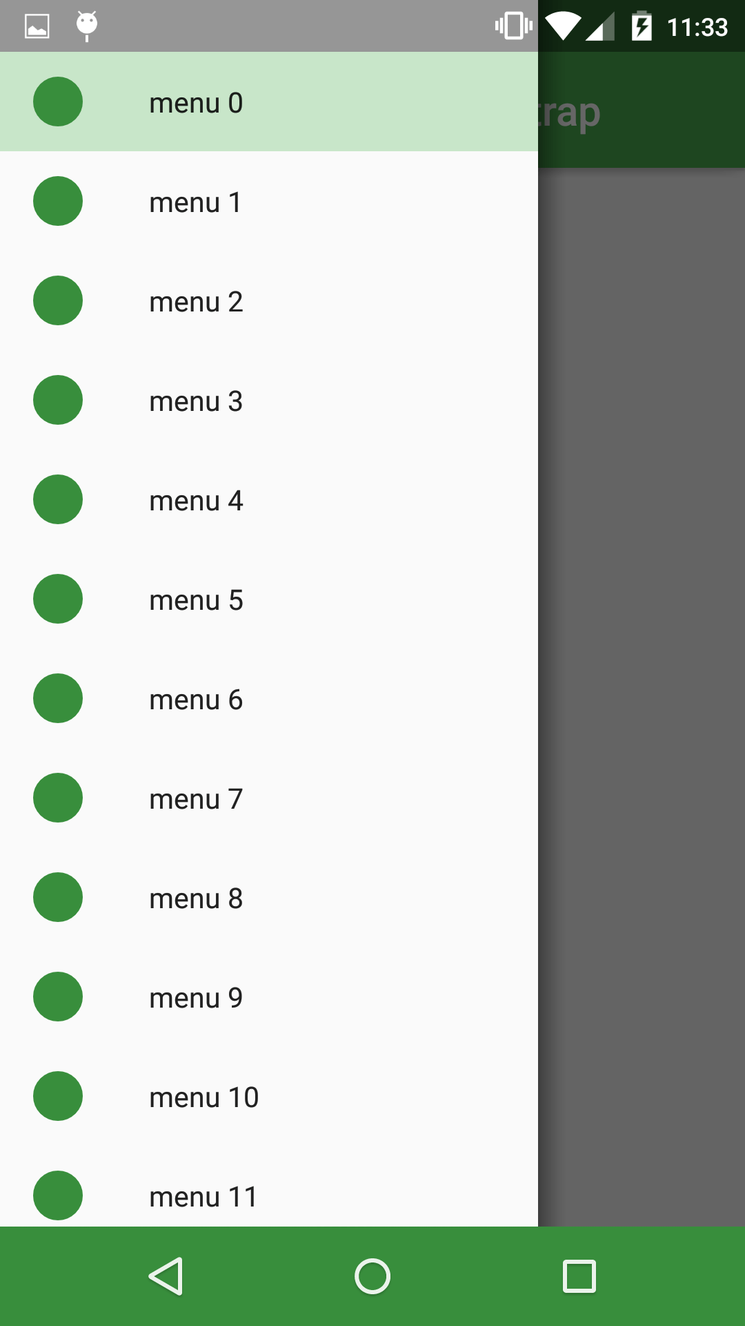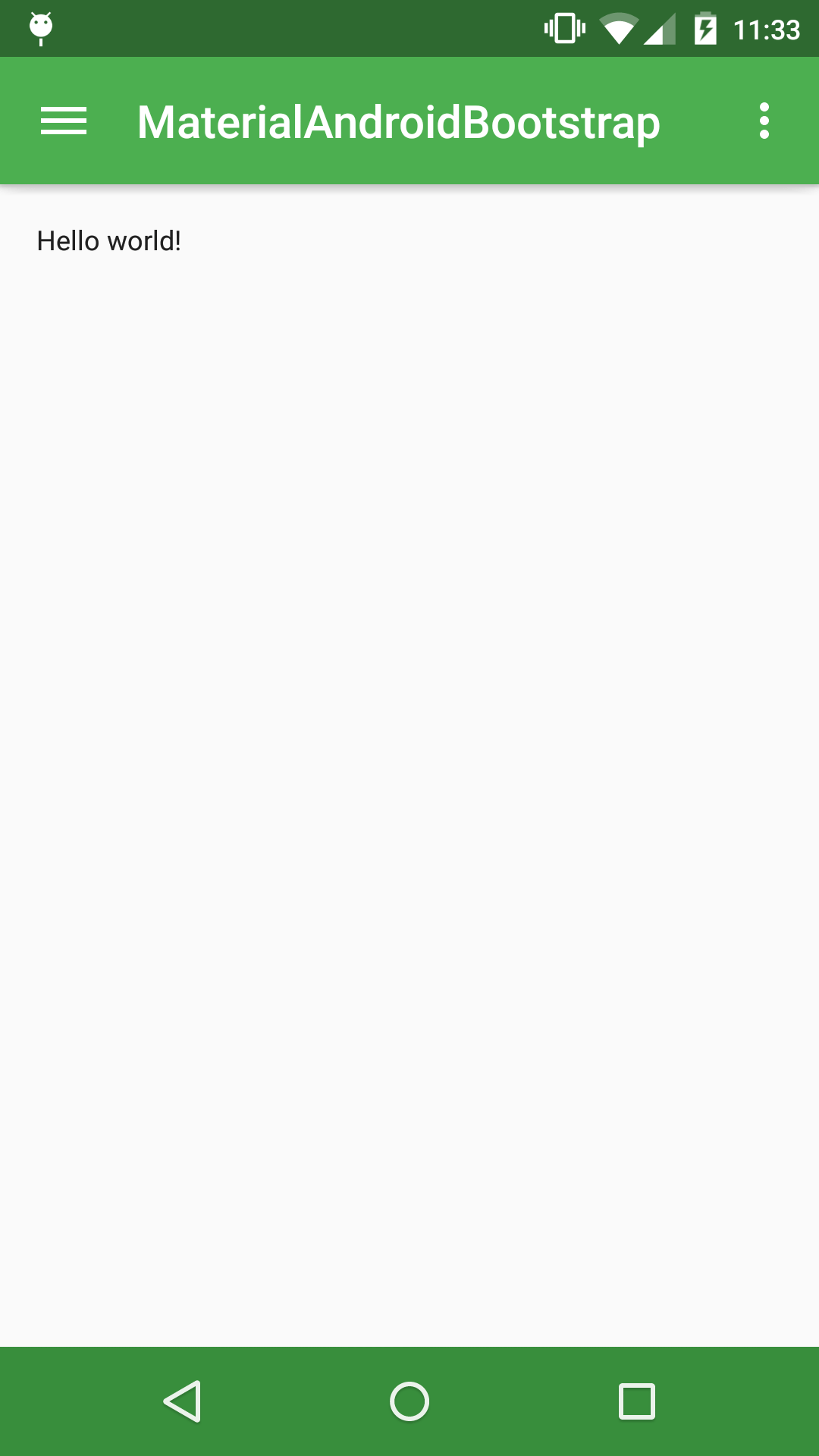 Si l’on se réfère aux specifications du Material Design, le menu doit prendre toute la hauteur de l’écran et se placer sous la barre de statut. Ceci n’est pas encore bien implémenté par tout le monde. De plus, l’implémentation n’est pas si simple. J’ai donc décidé de l’inclure dans ce squelette en ajoutant par là même, l’intéraction avec la Toolbar (pour pouvoir avoir l’icône hamburger sans avoir à ajouter de ressources). Je tiens au passage à remercier l’auteur de ce post qui m’a grandement aidé.