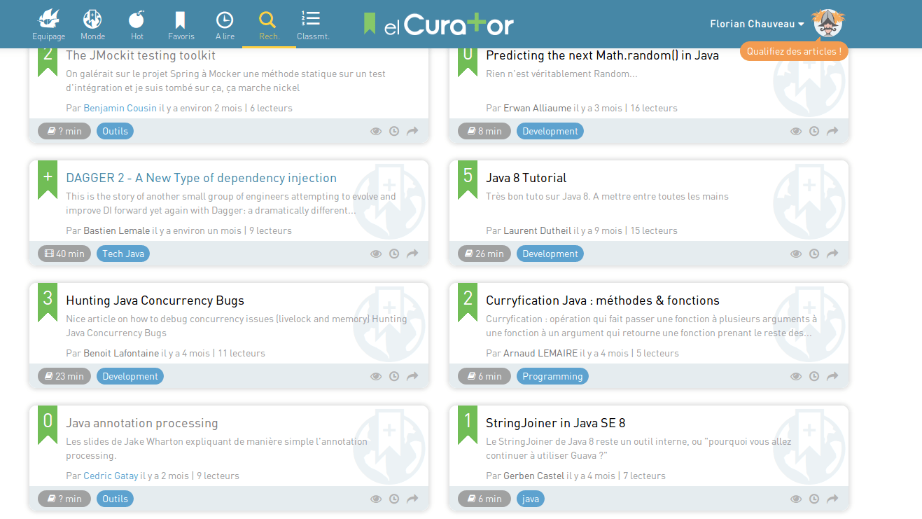 C'est d'autant plus dommage que la fonctionnalité de partage monde, ajoutée après le lancement, et qui permet de trouver facilement des liens pertinents sur l'actualité du monde du développement informatique est vraiment utile pour faire de la veille.Fin