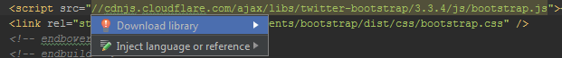- pour les CDN, vous pouvez demander à IntelliJ de récupérer la ressource (il ne la mettra pas dans votre projet pour autant)