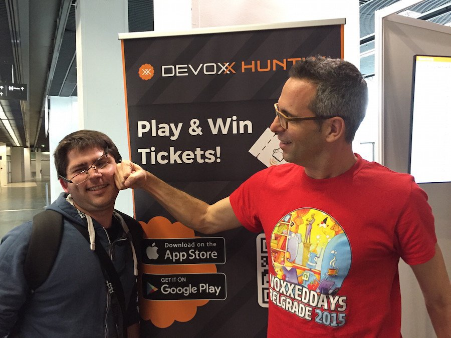 il y a eu de publié sur les stores l’application Devoxx Huntly qui a pour tag line “Win tickets for devoxx events”. Autant le dire tout de suite, jouer pour gagner des places pour Devoxx, ça mérite un peu plus d’attention.