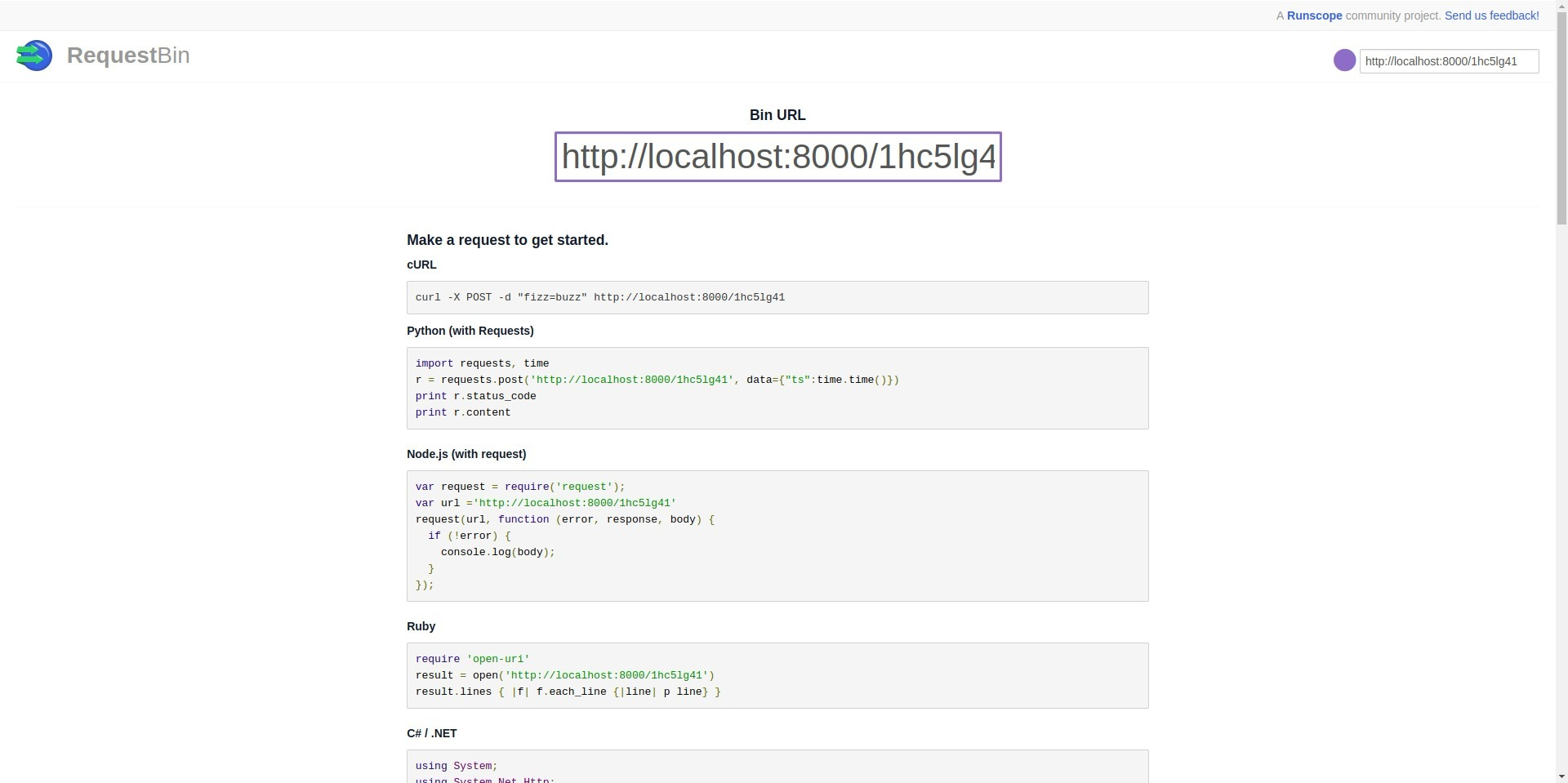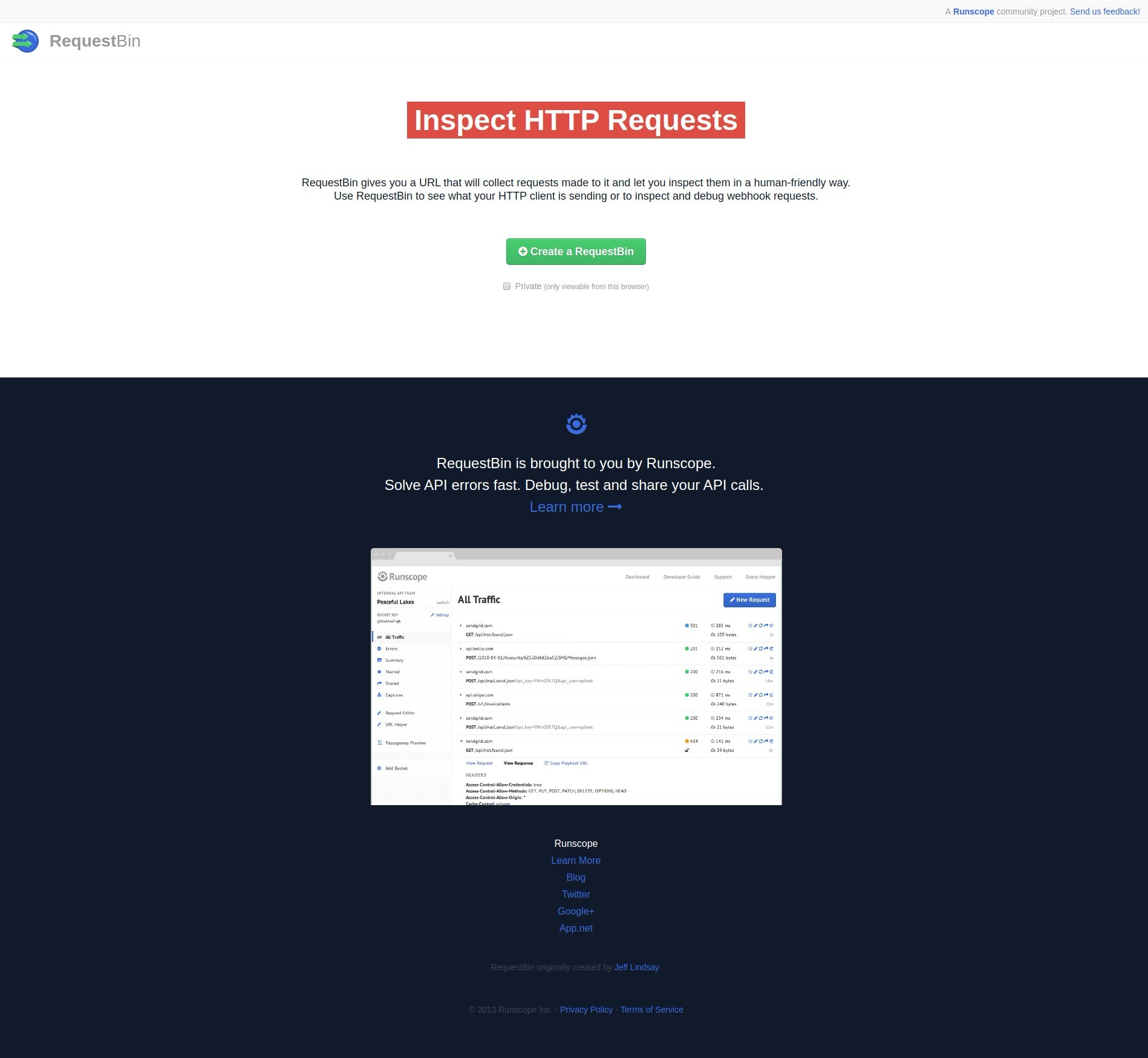 RequestBin est un service qui permet de tester très facilement des webhooks que l’on souhaite brancher à une API, ou bien encore de tester son client HTTP en inspectant les requêtes qui sont émises. Ce service était auparavant acccessible en ligne, mais victime de son succès, il a ensuite été retiré. Cependant leurs créateurs ont mis à disposition de la communauté les sources afin de permettre à n’importe qui d’heberger sa propre instance de RequestBin.